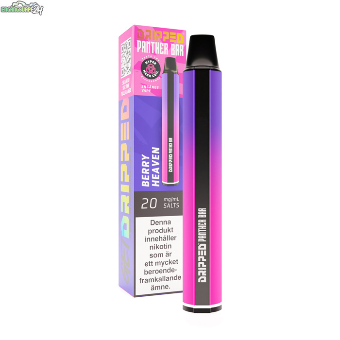 Dripped Panther Bar – Berry Heaven 20mg med nikotinsalt och 800 Puffar är en engångs vape med smak av mixade bär med lite cooling.