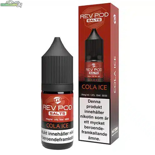Rev Pod Salts Cola Ice är en e-juice med nikotinsalt, framtagen för podsystem och vape startkit. Produkten innehåller 14 mg/ml nikotin och levereras i en 10 ml flaska.