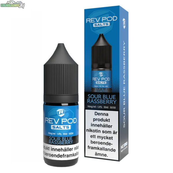 Rev Pod Salts Sour Blue Raspberry är en e-juice med nikotinsalt, framtagen för podsystem och vape startkit. Produkten innehåller 14 mg/ml nikotin och levereras i en 10 ml flaska.